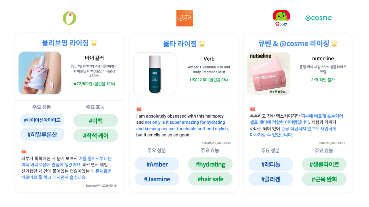 💡 Insight 이제 바디케어는 보습 뿐만 아니라 성분·제형·사용감으로 차별화된 ‘기능성 스킨케어의 확장판’으로 진화하고 있습니다.