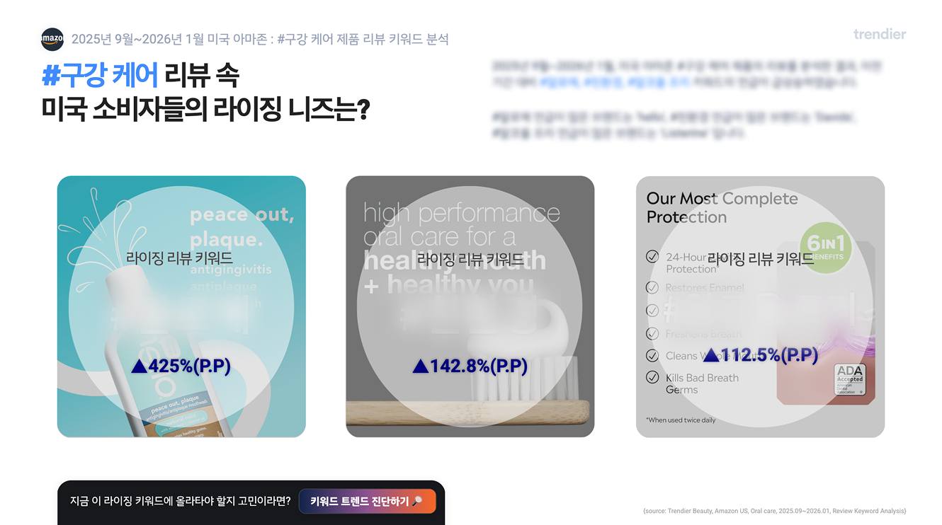 2025년 9월~2026년 1월, 미국 아마존의 구강케어 리뷰를 분석한 결과,